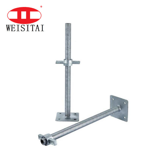 يقع جاك قاعدة السقالات في الجزء السفلي من المعايير ، ويمكن أن يوفر ضبطًا لتغيرات مستويات الأرض ، ويمكن استخدامه مع معظم أنواع نظام السقالات.